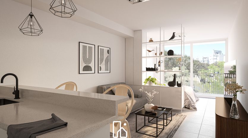 Living comedor • Cocina integrada + barra desayunador • Garaje y Parrillero de uso exclusivo opcionales